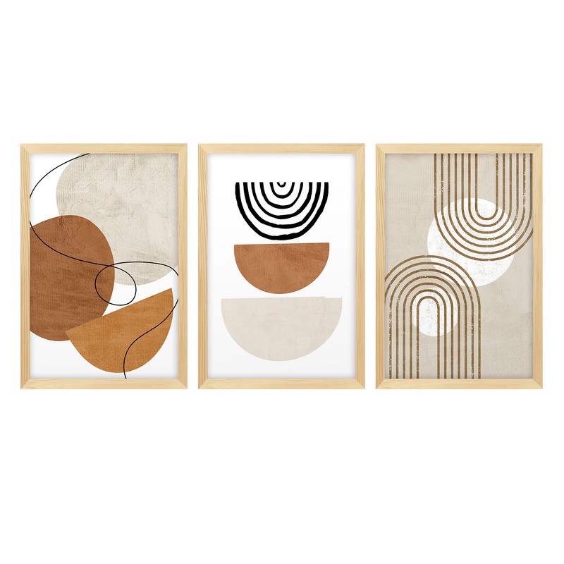 Kit 3 Quadros para Decoração Formas Minimalista Moderno Sala Moldura Pinus