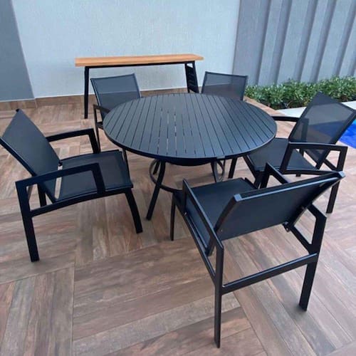 Conjunto De Mesa 1,40m + 5 Cadeiras De Alumínio Para área Externa Em Tela Sling - Preto