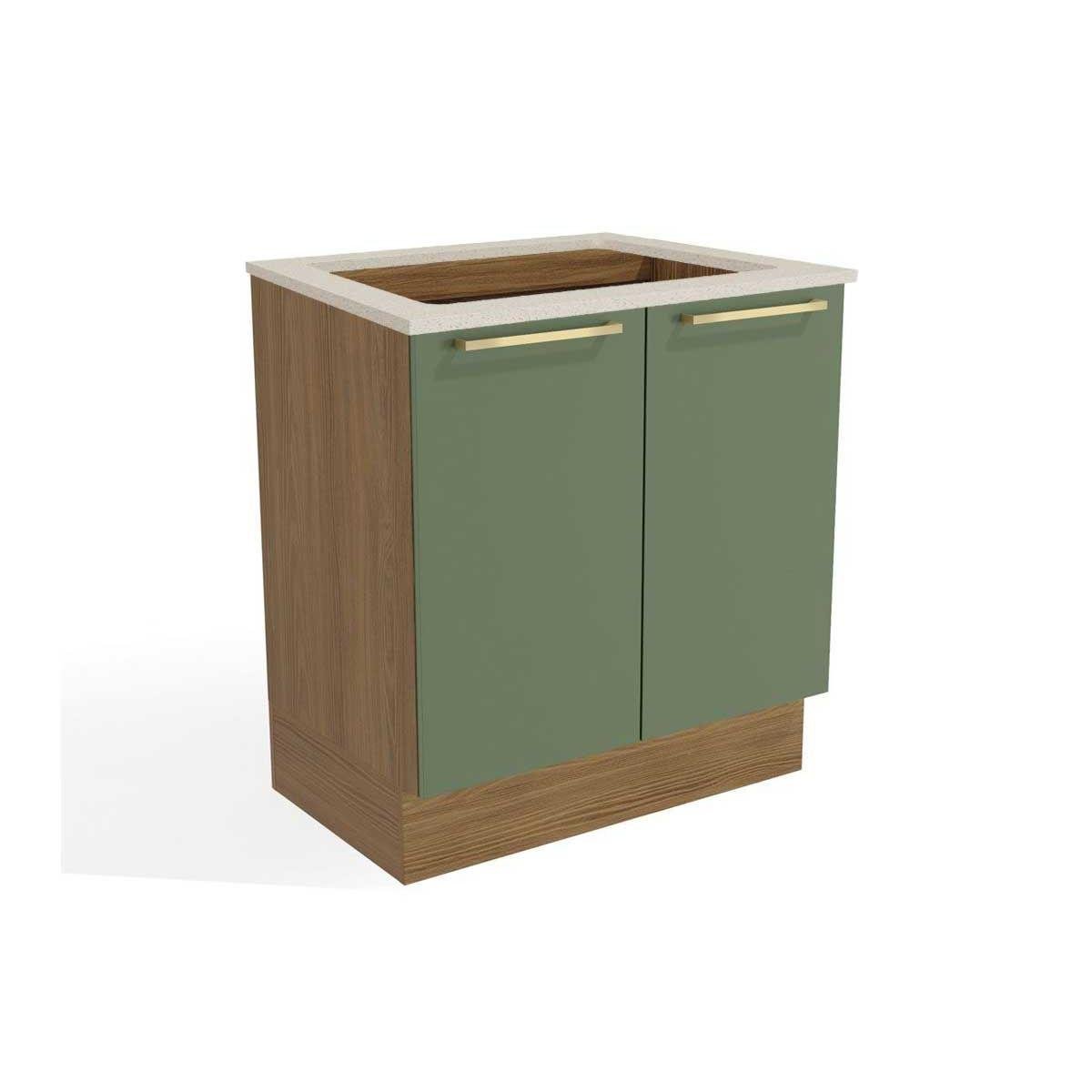 Balcão de Cozinha Modulado Botanic M623 c/ 2 Portas Nogueira/Verde Oliva - Kappesberg