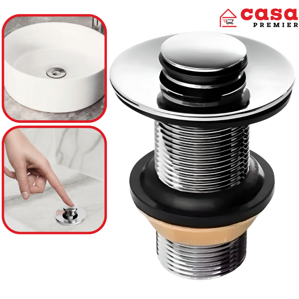 Válvula Ralo De Pia Banheiro Click Up Ralinho Inteligente Para Cuba Lavatório Com Botão Central 1 1/4 Em Inox Metal Cromada