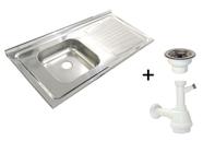 Pia Inox Fabrinox PSD1000E 100x52cm, cuba esquerda, válvula e sifão