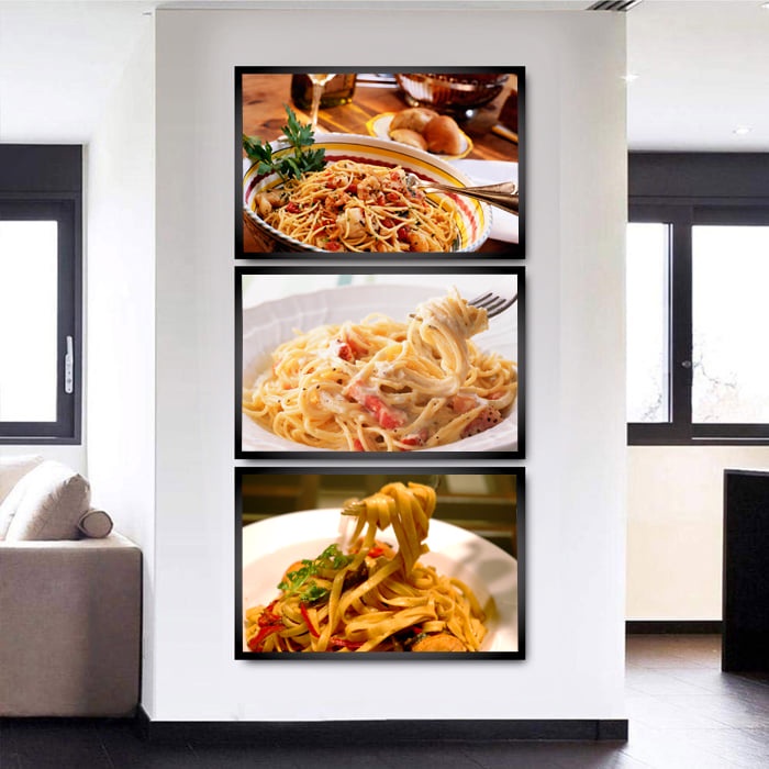 Kit 3 Quadros Para Restaurante Cozinha Macarrão Cantina Recepção Decorativo Decoração Com Moldura