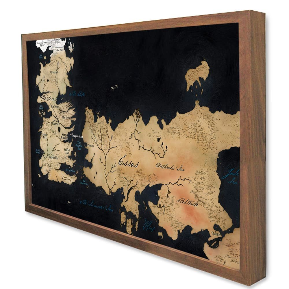 Quadro Decorativo Mapa Game Of Thrones em Moldura Caixa Tacolado Moldura Caixa 3cm Madeira com Vidro