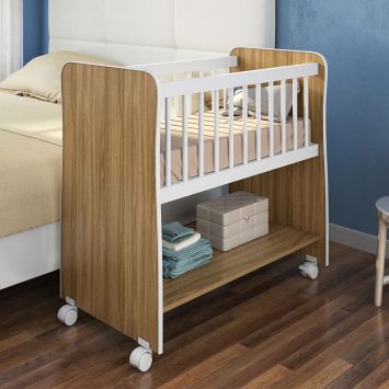 Mini Berço Com Colchão Moisés Sissi Cor Branco Soft com Eco Wood - Matic Móveis
