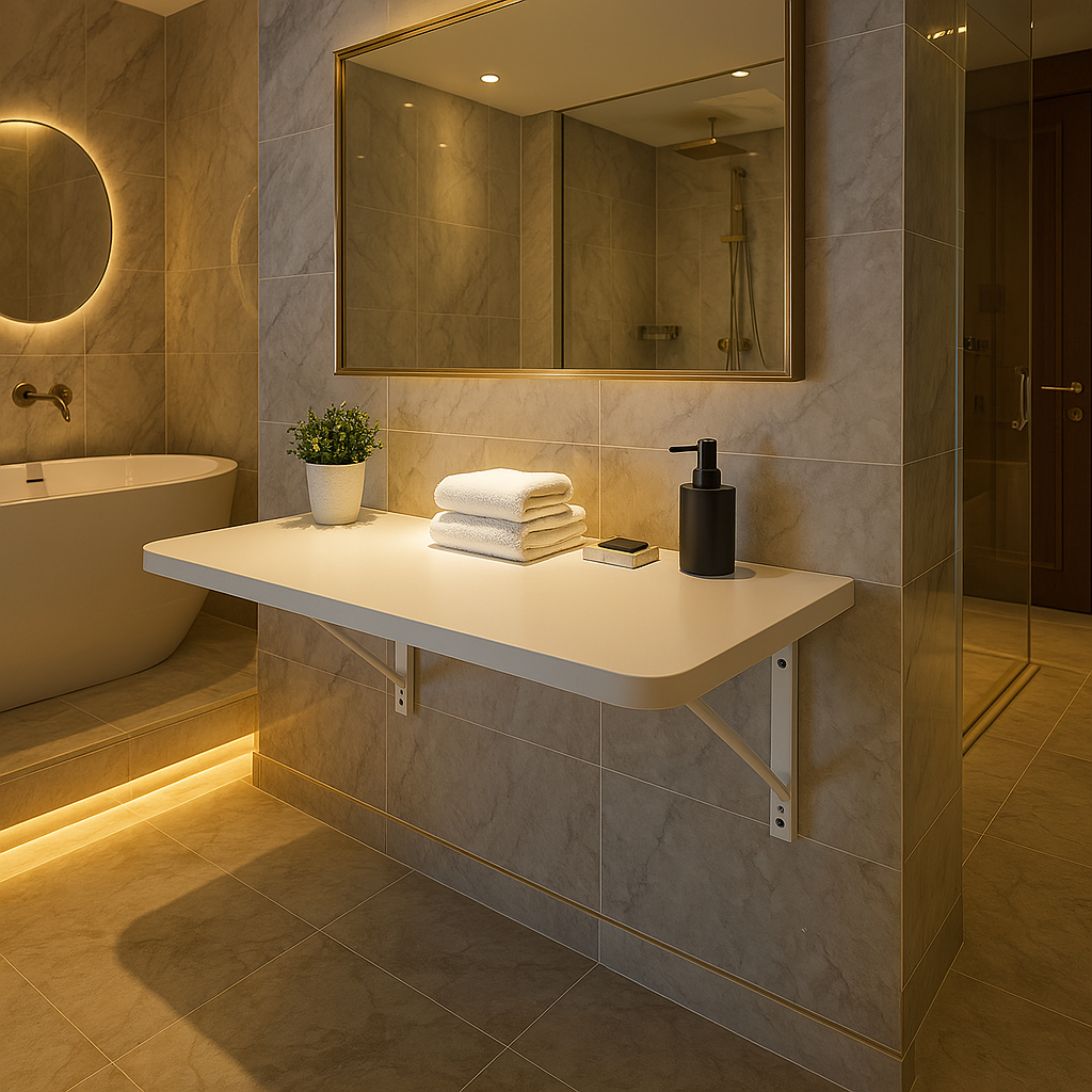 Mesa Dobravel Retratil de Parede Suspensa Borda Redonda 90Cm 100Cm 120Cm Para Banheiro Quarto Sala Cozinha