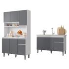 Balcão de Pia Tatiane 120 cm e Armário Cozinha Kit Alice Ambiente Branco Cinza Brilho - AJL
