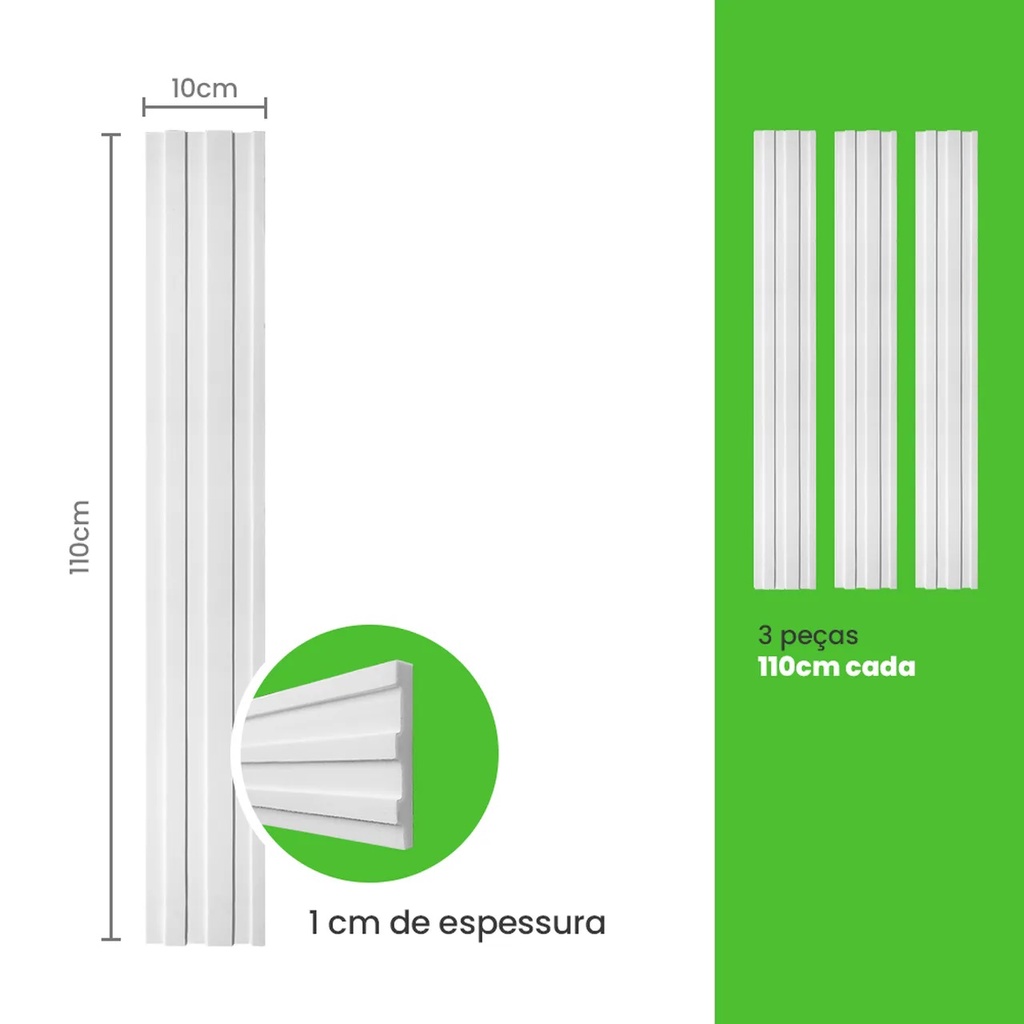 Painel Ripado Três Ripas de 1,10m (PR61) | 10cm de Largura | EVA Autocolante