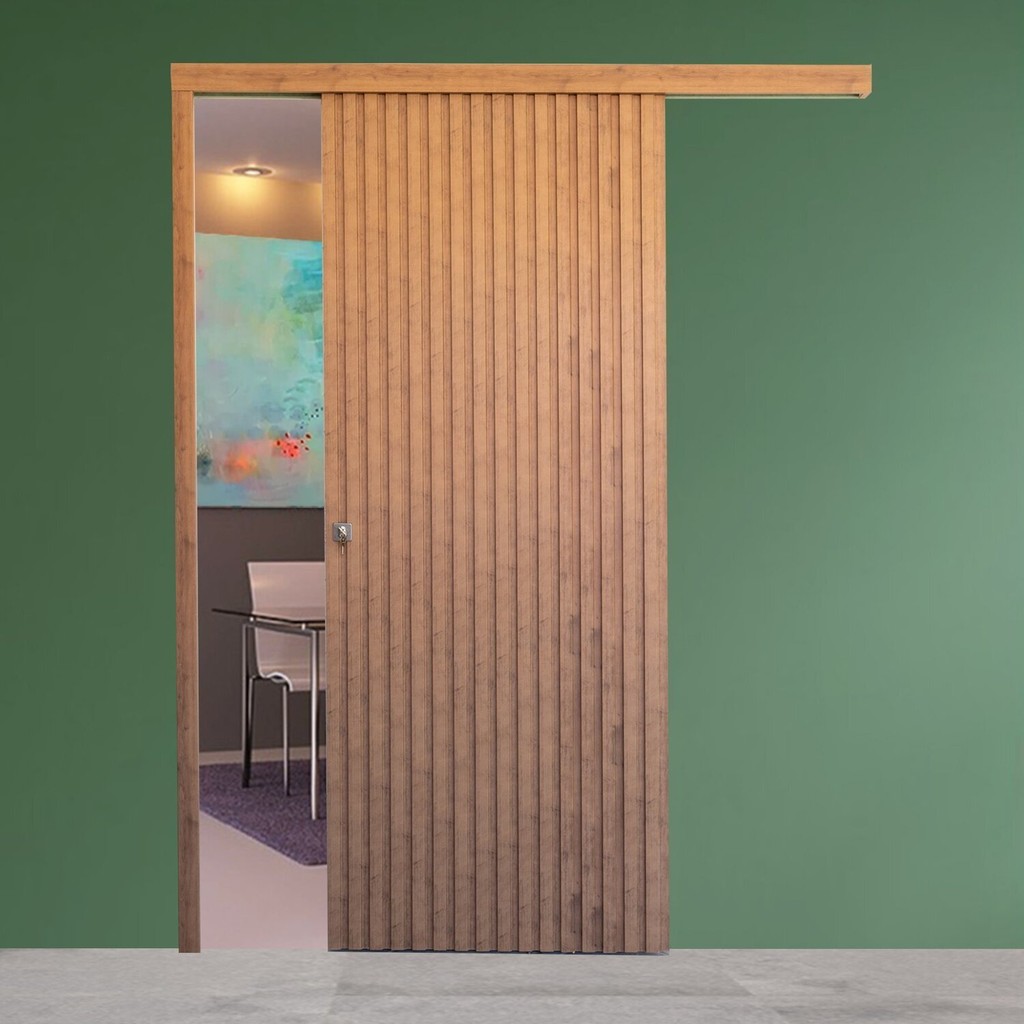 Porta de Correr de Madeira Ripada Completa 210x82cm com Fechadura e Ferragens