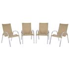 Jogo de 4 Cadeiras e Mesa Ascoli Adaptada em Alumínio Para Piscina Varanda Área - Capuccino