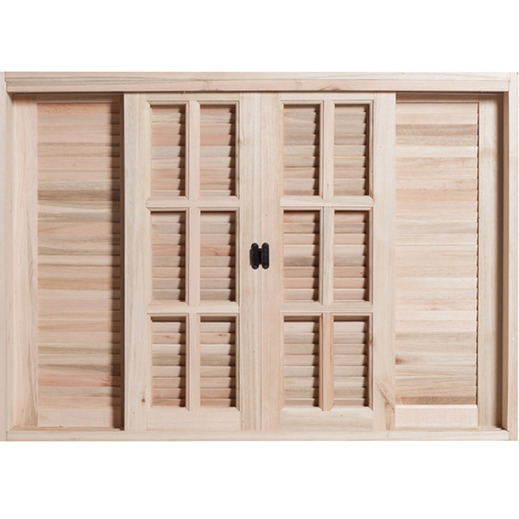 Janela De Madeira Veneziana Correr Padrão Cedro Eco Com Guarnição 1,00 X 1,20 Linha Uni