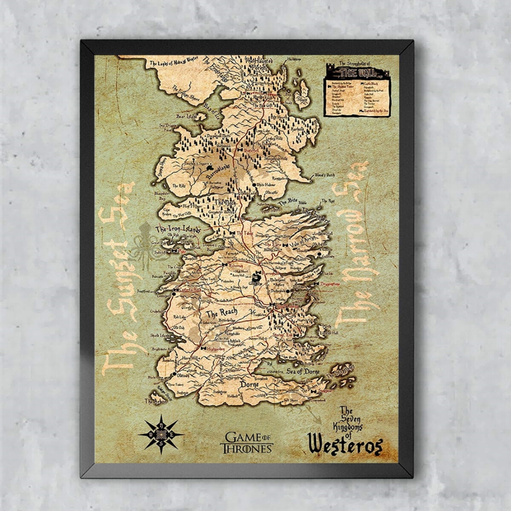 Quadro Decorativo Game Of Thrones Mapa Cinema Escritórios Quartos Salas Com Moldura RC005