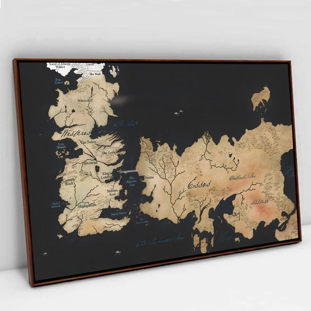 Quadro Decorativo Mapa Game Of Thrones em tela Canvas TaColado Moldura Flutuante 4,5cm Madeira 60 x