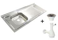 Pia Inox Fabrinox PSD1200E 120x52cm, cuba esquerda, kit completo