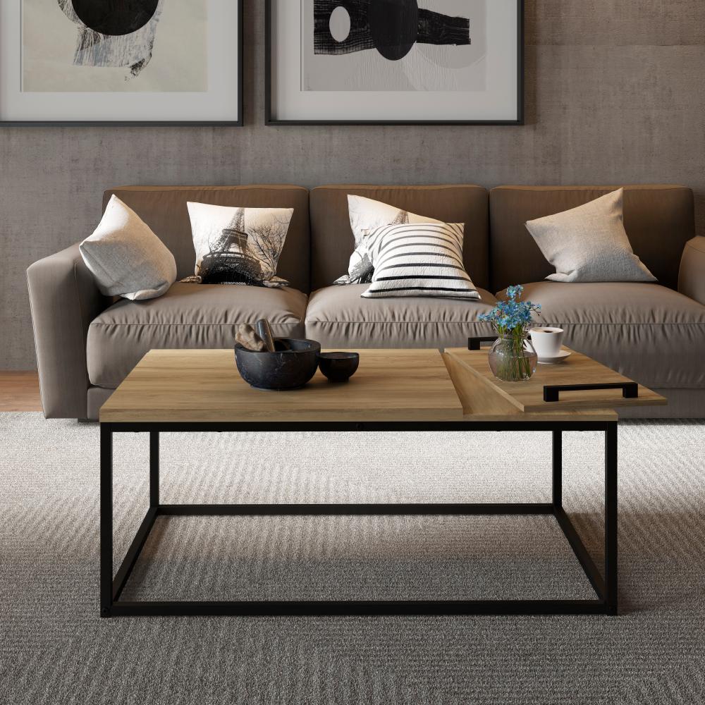 Mesa de Centro com Bandeja Madeirada e Tubos Pretos Carraro 1346