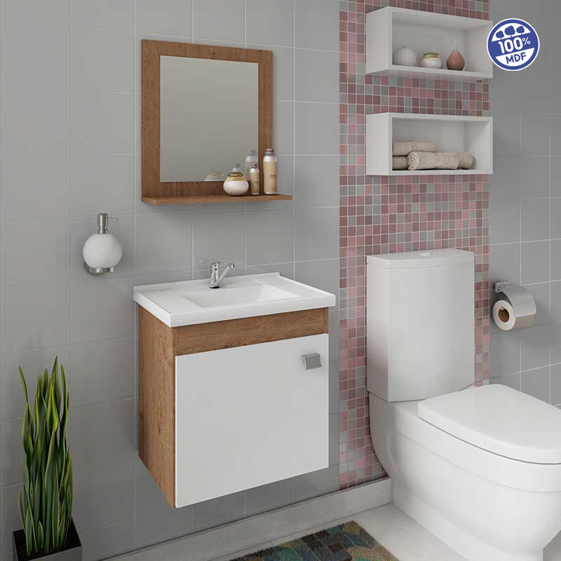 Kit Armário Banheiro Íris Gabinete Suspenso Com Cuba E Espelheira MGM Móveis Várias Cores