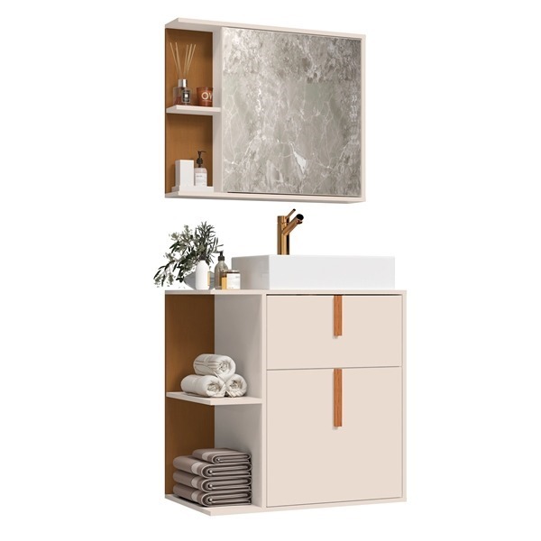 Kit Gabinete com Cuba e Espelheira Charm p/ Banheiro Gabinete Armário suspenso com Espelho MDP