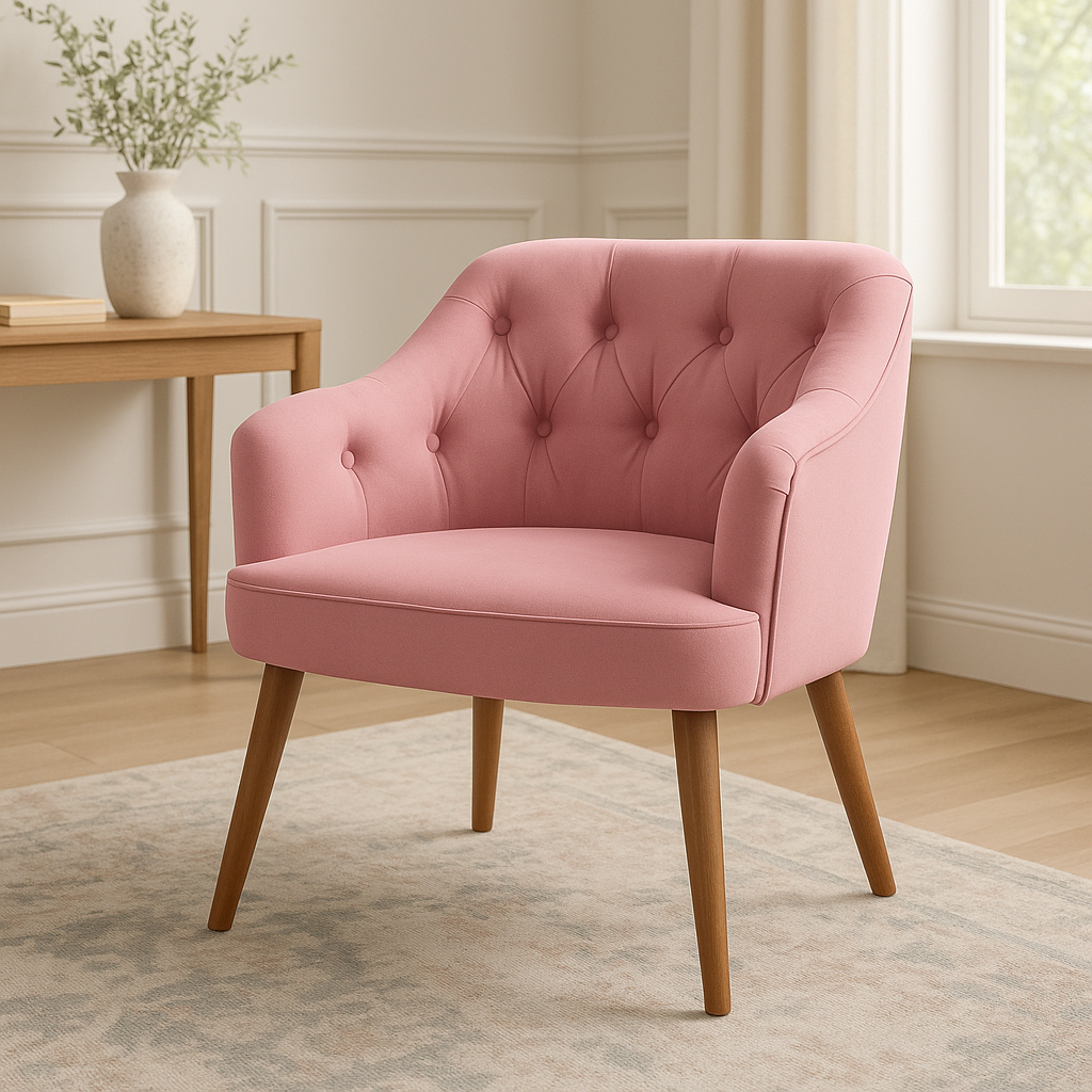Poltrona Rubi Decorativa Veludo Detalhe Capitonê e Pés em Madeira Sala Estar Quarto Recepção - AV