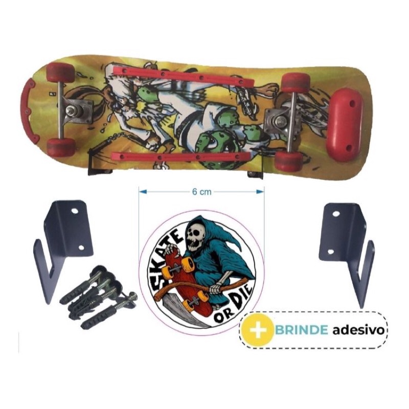 Suporte de Parede P/ Skate Longboard Cruiser Horizontal
