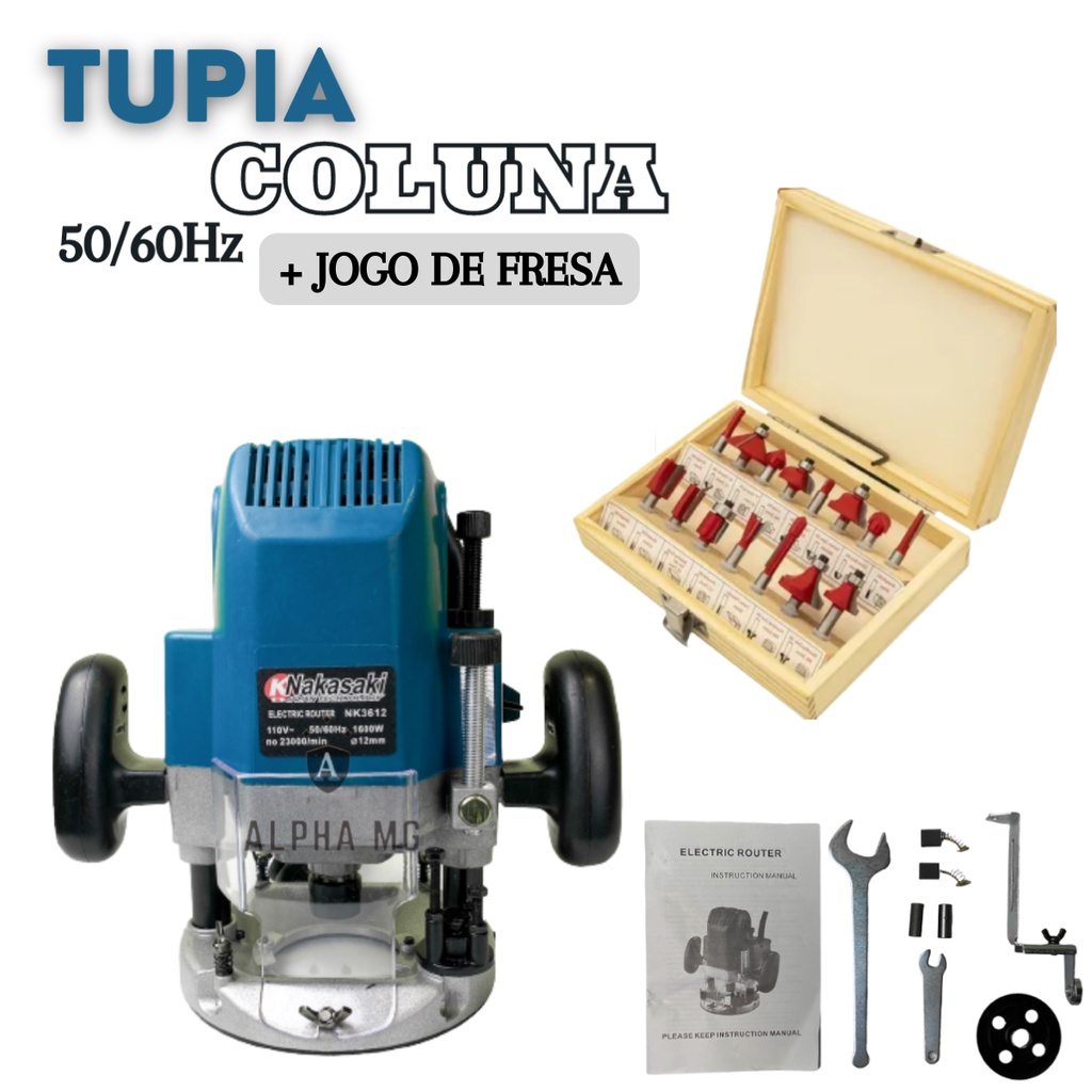 Kit Tupia Coluna 8mm E 12mm 1600w + 15 Fresas 8mm Super Promoção!