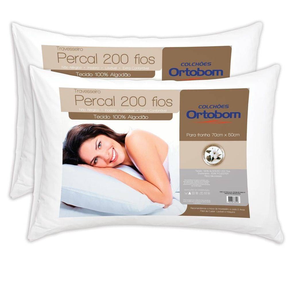 Kit 2 Travesseiros Ortobom Percal 200 Fios 100% Algodão Antialérgico