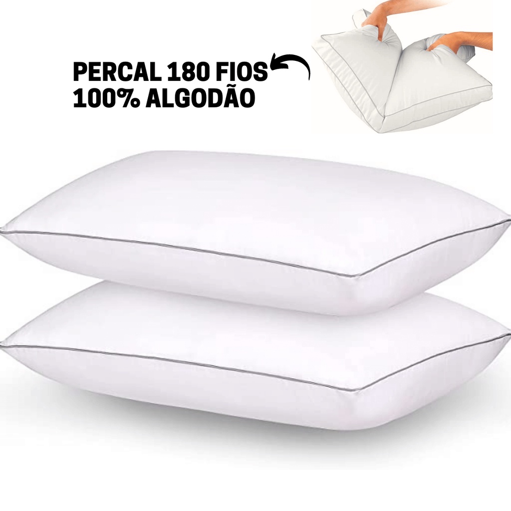 Kit 2 Travesseiros 180 Fios 100% Algodão Percal Padrão Hotel 5 Estrelas 50 x 70 Microfibra Antialérgico Antimofo