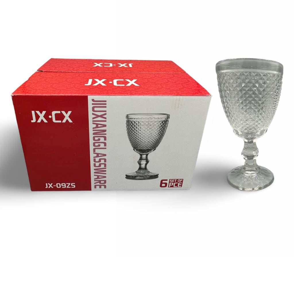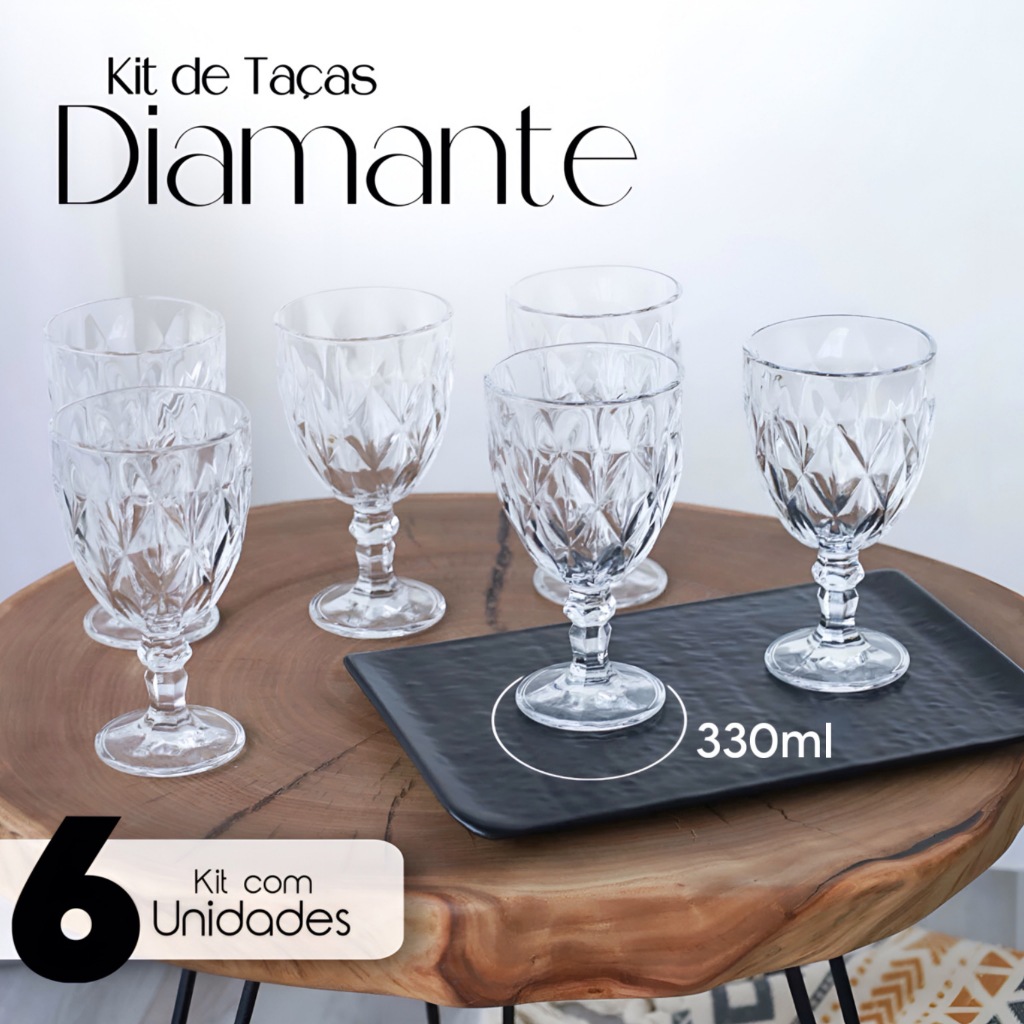 Jogo 6 Taça Diamond 330ml Copo Luxo Vidro Transparente Bico de Jaca Água Vinho Cerveja Kit Diamante