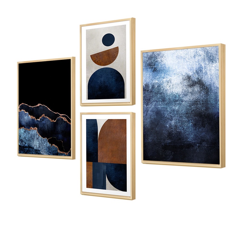 Kit 4 Quadros Decorativos Geométrico para Escritório 88x64cm Degradê Azul Moldura Caixa - Hugart