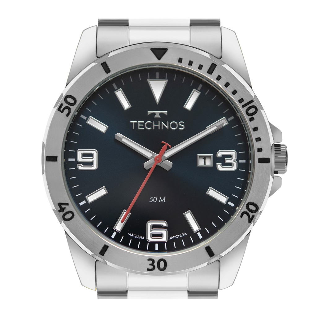 Relógio Masculino Technos Performance Prata Militar Casual Original Prova D'água Garantia 1 ano