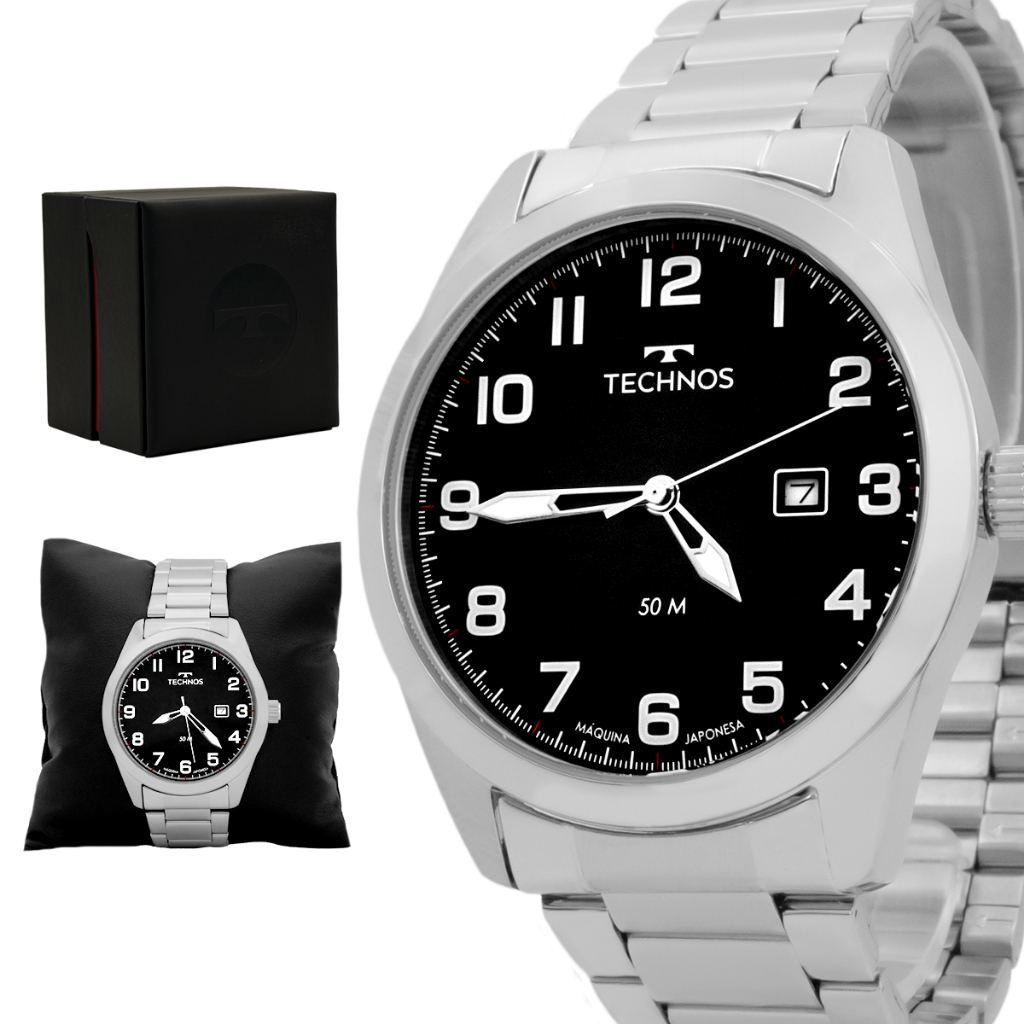 Relógio Masculino Technos Prata Performance Militar Casual Original Prova D'água Garantia 1 ano