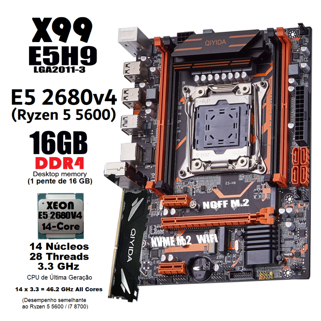 Kit PC Gamer X99 Gaming + Xeon E5 2680v4 14 Núcleos (Ryzen 5 5600) + 16GB DDR4
