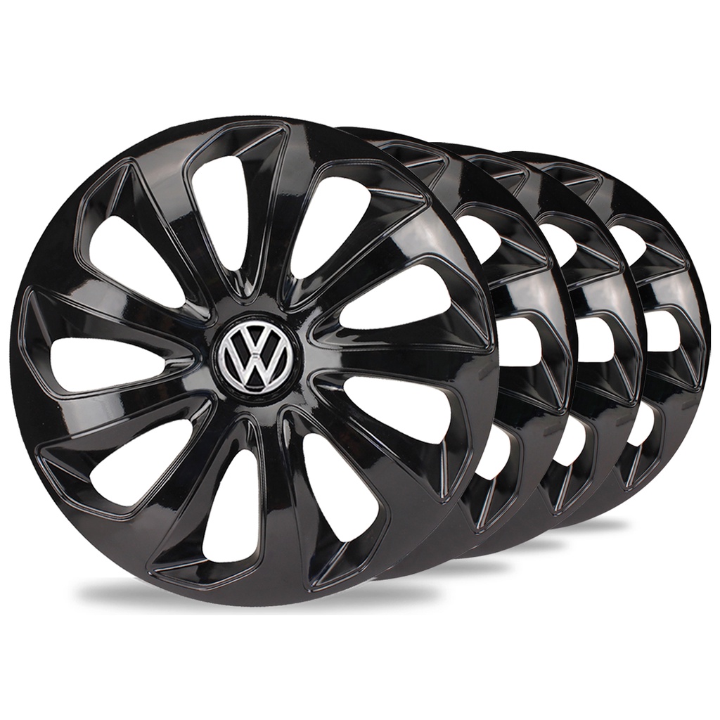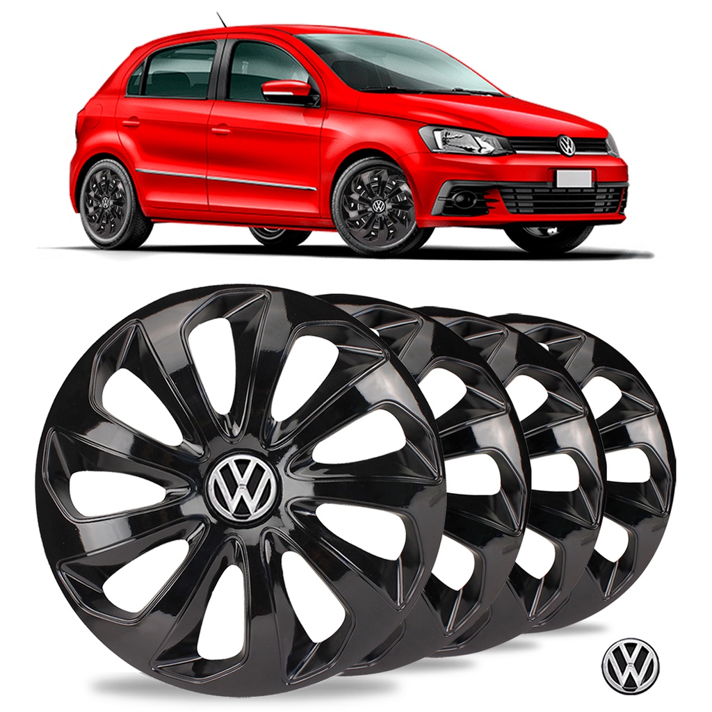 Jogo 4 Calota Volkswagen VW Aro 14 Fox Preta Brilhante