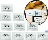 Kit C/ 10 Tomada embutir Para Móveis planejados mesa escritório 2p+t Branco - Margirius