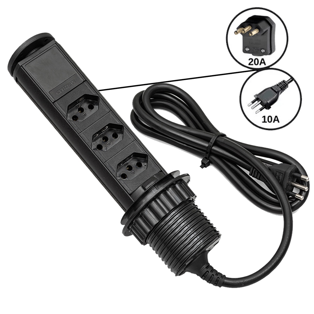 Torre De Tomada Multiplug Retratil Embutir Mesa Bancada 3 Tomadas 10A - Cozinha - Branco Branca Cinza ou Preto PretaTipo Totem Multiplug Elétrica Elétricas Multi Plug Sobrepor em Mesa Bancada Granito Madeira