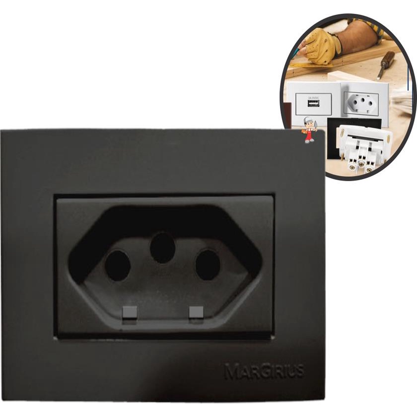 Tomada de Embutir Para Moveis Planejados Bancada Mesa Cozinha Sala Painel Quarto 2P+T 20A 250V Preta Margirius
