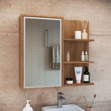 Armário de Banheiro com Espelho Paula 1 PT Mel e Arenas