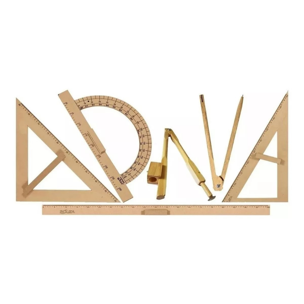 Kit Geométrico do Professor Mdf Com Régua 60 cm 1 Compasso Para Quadro Branco 40 cm, 1 Esquadro 30/60 Graus 1 Esquadro 45 Graus e 1 Transferidor 180 G - Souza