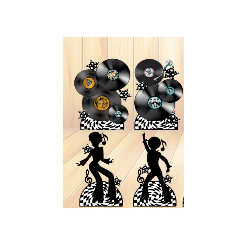 DECORAÇÃO ANOS 60 KIT COM 4 DISPLAY DE 12 CM EM MDF DE 3MM