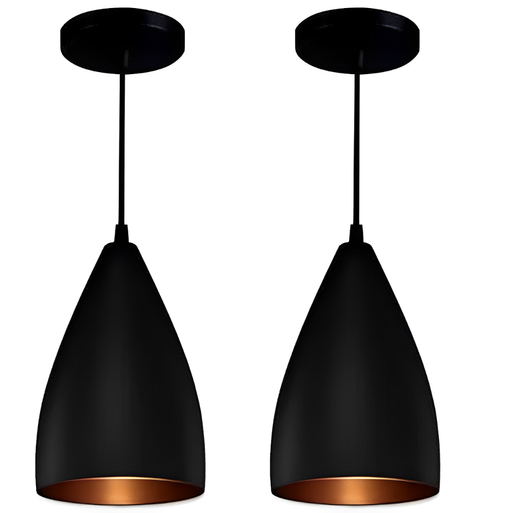Novo Combo Kit com 3 Pendentes Soft Cone Vegas Preto Cobre Luminária Alumínio Lustre 17Cm