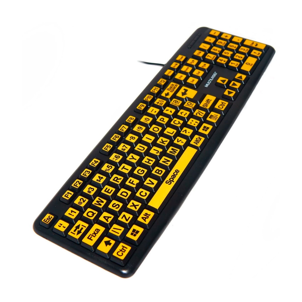 Teclado Ampliado Adaptado Baixa Visão Idosos em Alto Contraste com Teclas Amarelas Letras Pretas