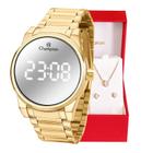 Kit Relógio Champion Feminino Digital Dourado Espelhado + Kit Colar e Brincos Presente Luxo CH40086B
