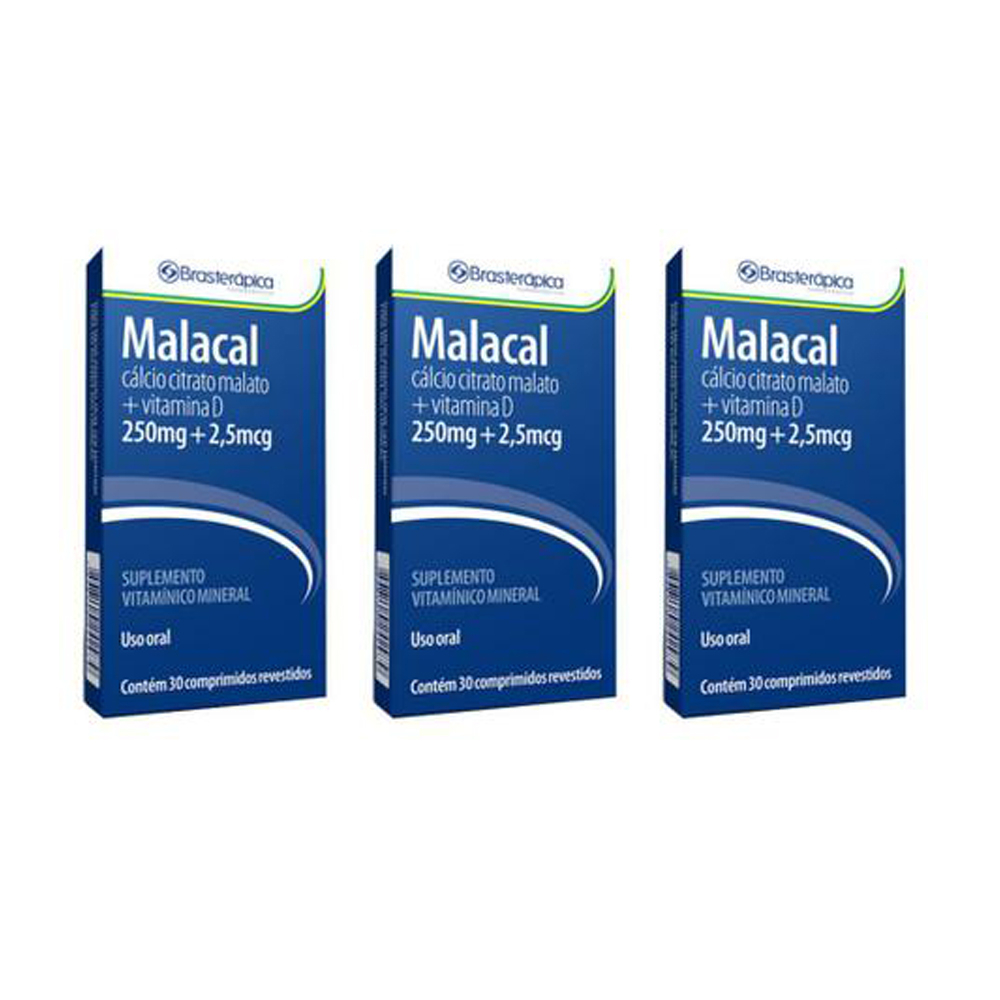 KIT 3X MALACAL 250/2,905 MG 30 CP CALCIO+VIT D3 BRASTERAPICA