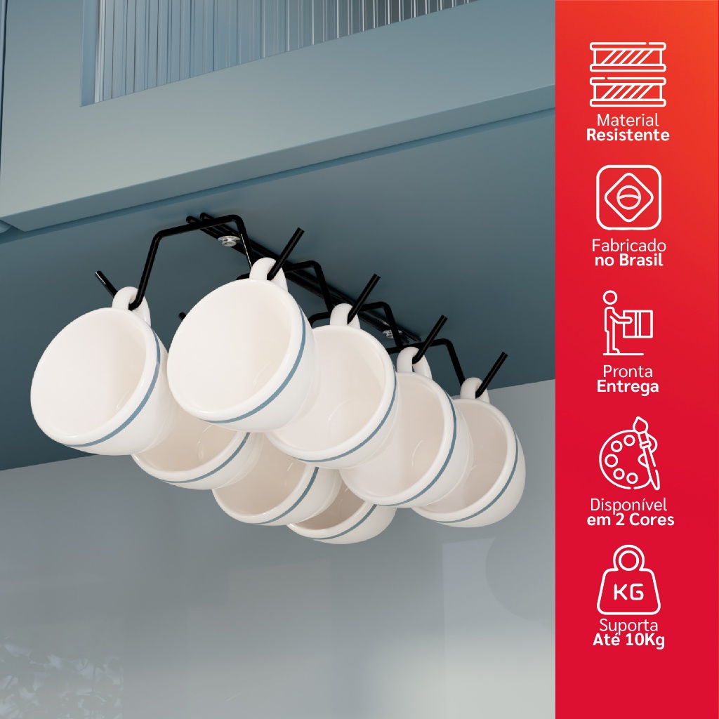 Suporte Porta Xícaras Fixo Organizador Armário de Cozinha Para 12 Xicaras