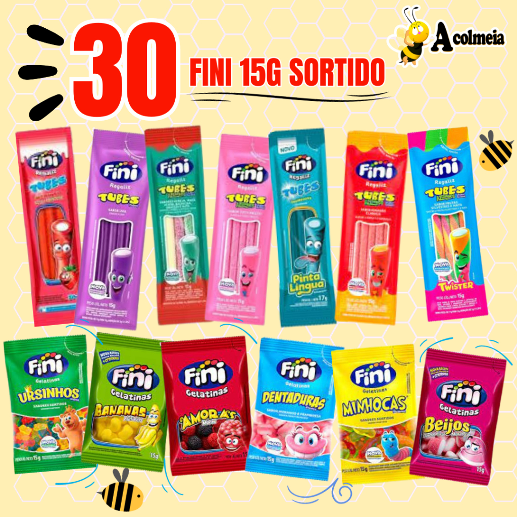 COMBO KIT FINI COM 30 UNIDADES DE 15G CADA - SABORES SORTIDOS - FESTA - ANIVERSÁRIO - DIA DAS CRIANÇAS