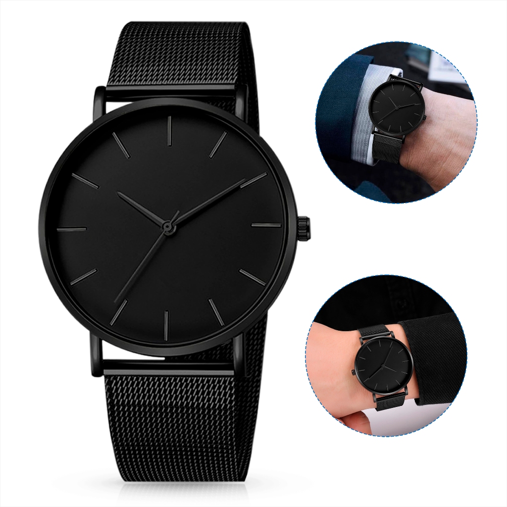 Relógio Masculino Preto Ultra Fino Minimalista Analógico Pulseira De Aço Inoxidável Resistente A Água - Envio Rápido
