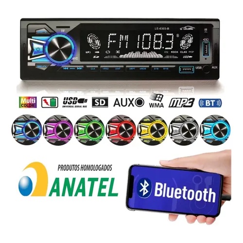 Radio de carro mp3 bluetooth melhor q Painer Soni Aparelho de som Auto 7 Cores Fm muda de cor potente forte LEY-1852A