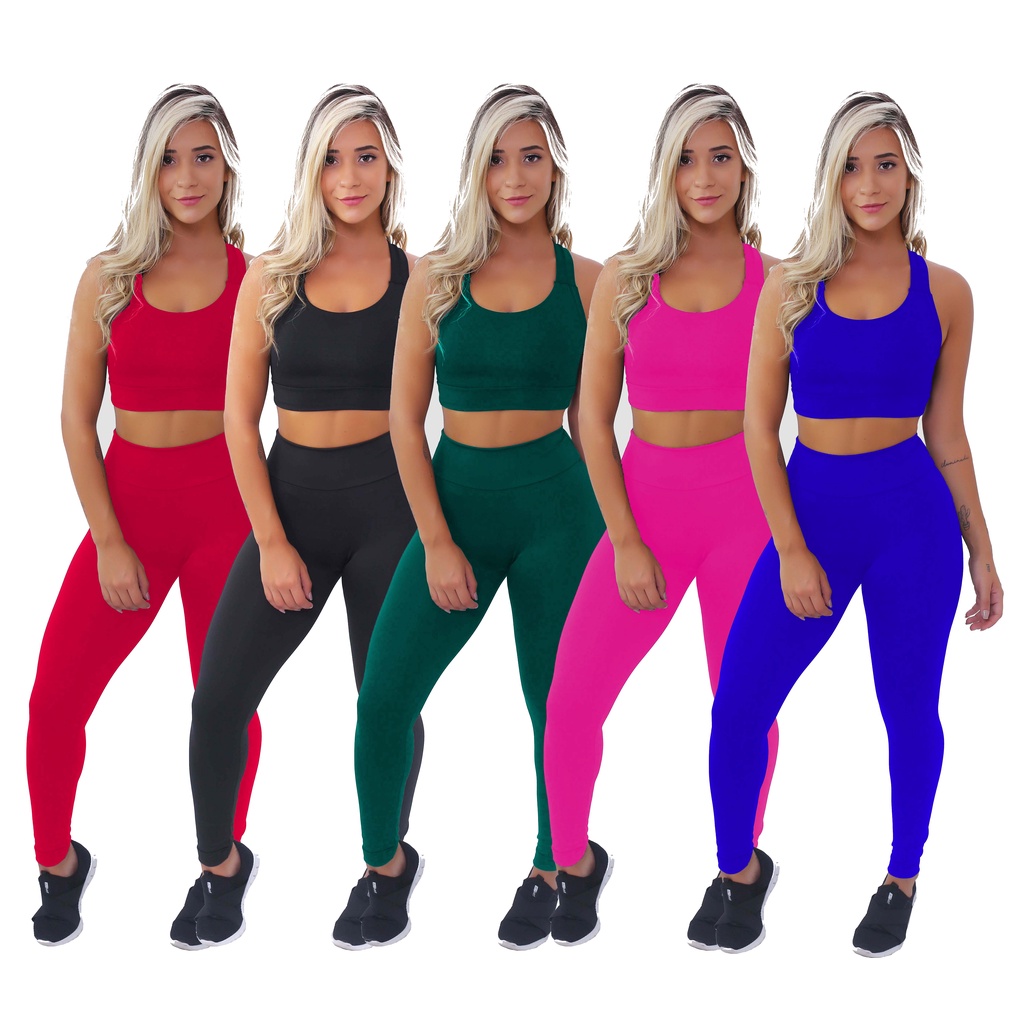 Kit 3 Conjuntos Calça Legging E Top Fitness Roupas Femininas Para Academia Suplex A01