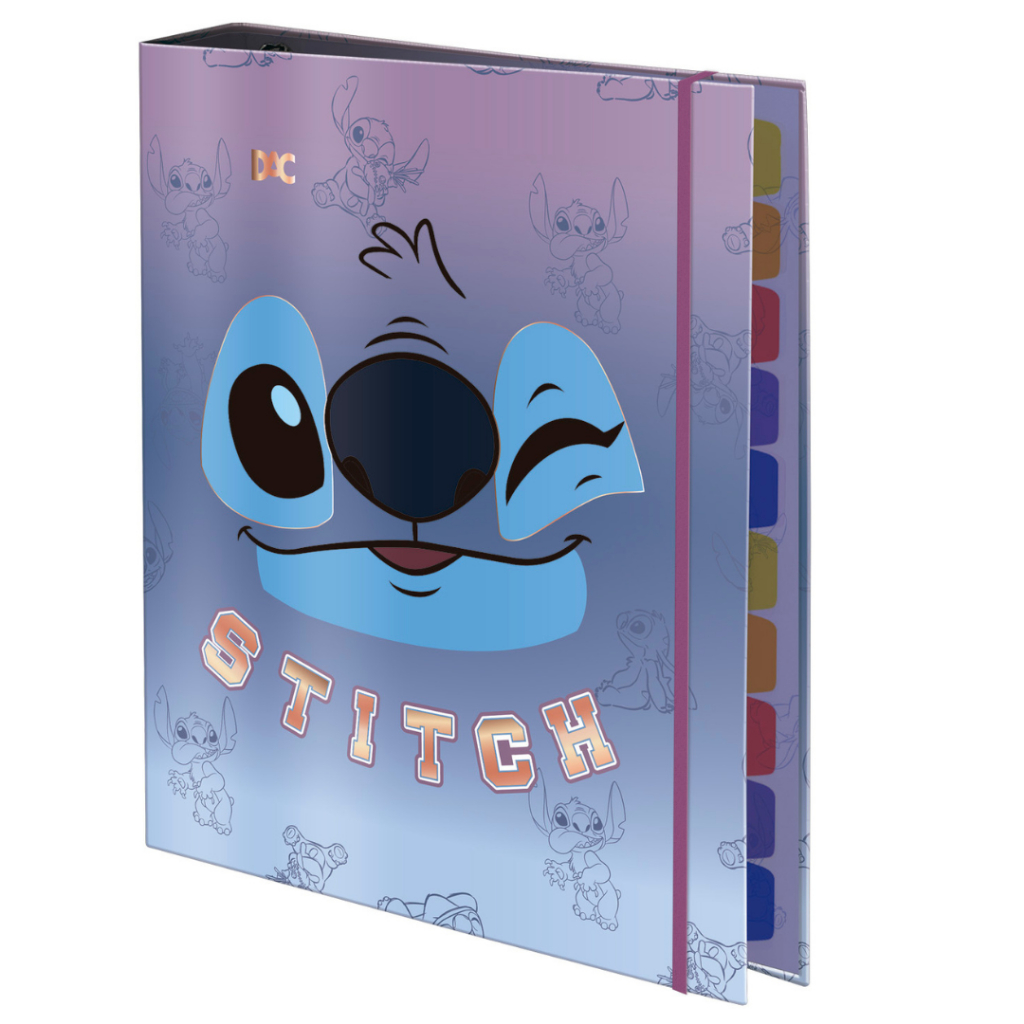 Fichário Colegial Stitch DAC - Caderno Argolado - com elástico e 48 folhas decoradas - 18 x 24 cm