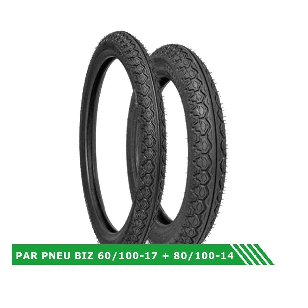 Par pneu biz 100 110 110i 125 bis c100 pop 100 dianteiro 60 100 17 traseiro 80 100 14 maggion 0734