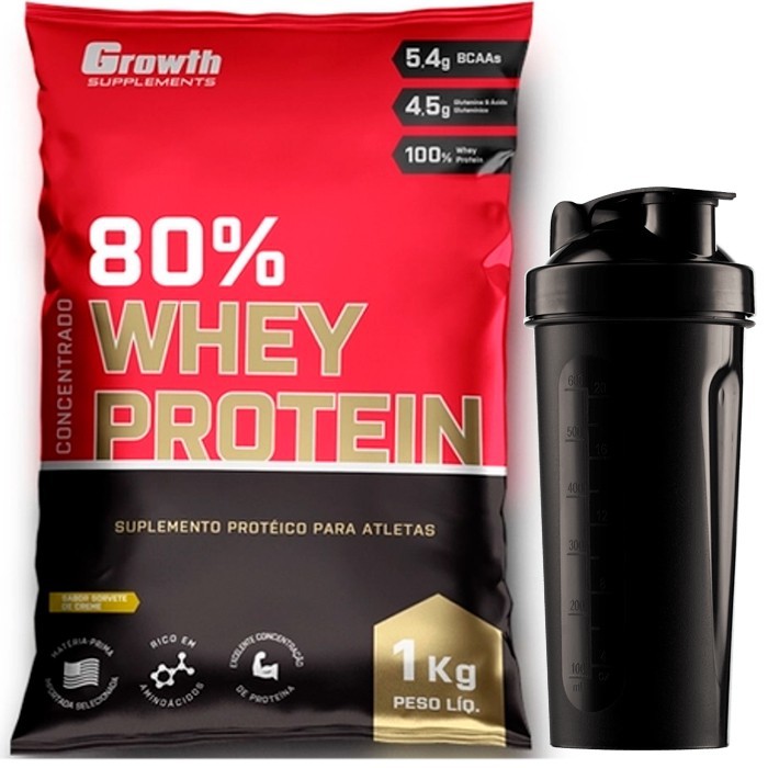 80% Whey Protein Concentrado - Pacote 1kg - Growth Supplements (Ganhe Coqueteleira)