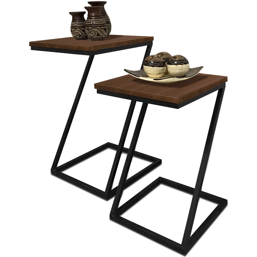 Conjunto Mesa De Canto Industrial Dupla Lateral Sieger Decoracao Para Sala - Preto/Villandry